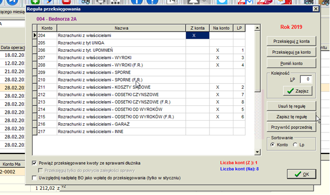 Reguła przeksięgowania z konta 204 na inne konta z kolejnością przeksięgowań: