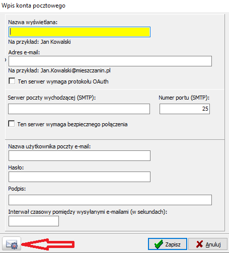 - Numer portu (SMTP): numer portu SMTP skrzynki pocztowej.