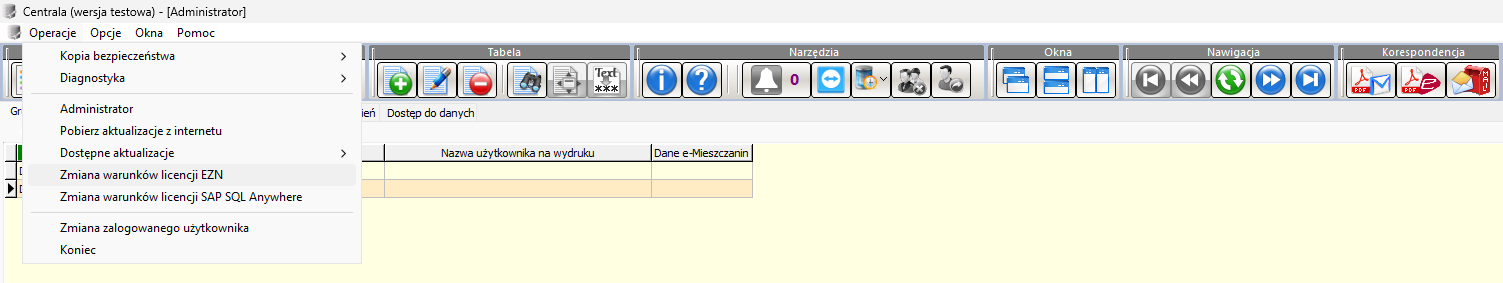 - Zmiana warunków licencji EZN (tę metodę używamy w momencie gdy aktualizujemy program z wersji np. 23 na 24 lub zmieniamy liczbę rachunków NRB)
