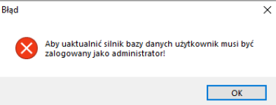 Gdy wyświetla się błąd: "Konieczna jest instalacja aktualizacji klienta silnika bazy danych...", który wygląda następująco: