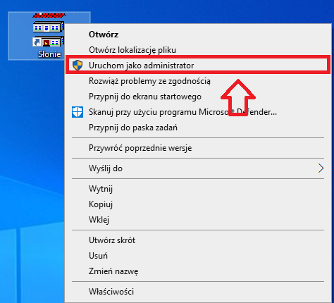 - Kliknij prawym przyciskiem myszy ikonę programu i wybierz "Uruchom jako administrator".
