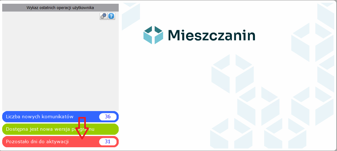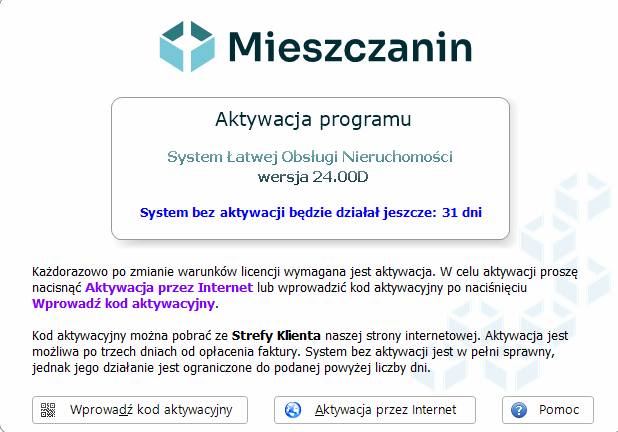 - Gdyby w programie pojawił się komunikat, z ilością dni do aktywacji, należy na niego kliknąć