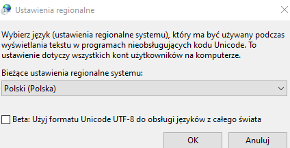 Należy sprawdzić w systemie czy ustawienia regionalne są ustawione na Polskę.