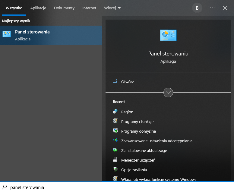 - Aby to wykonać, należy otworzyć panel sterowania.