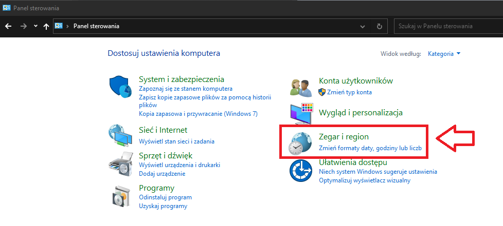 - Następnie przechodzimy do ustawień Zegara i regionu: